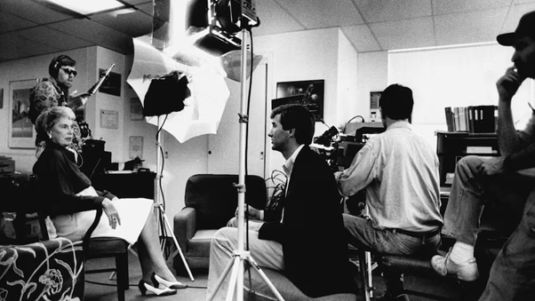 Ruth Varn (left) being interviewed for a documentary on airport action groups. Image Credit: Tampa Bay Times.