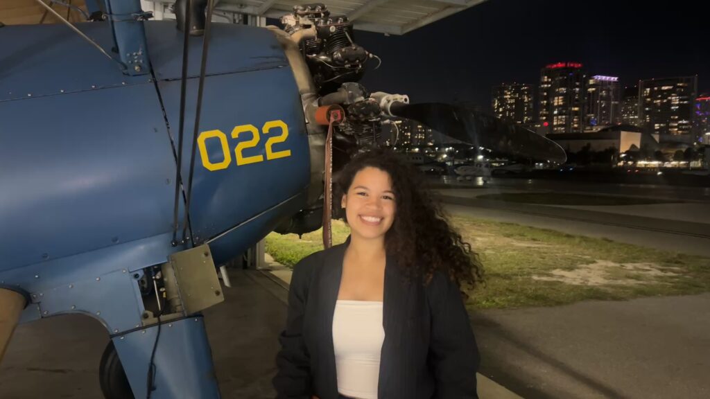 Without clear guidance on how to fund her training, Mikayla worked two jobs, including a position at the front desk of the flight school. Through her hard work, she earned one of the scholarships offered by Friends of Albert Whitted Airport. The network was not only helpful financially but also kept her connected to opportunities and mentors in aviation.